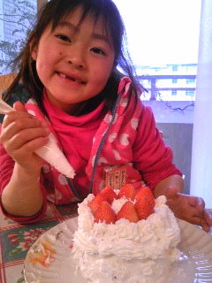 一緒にクラッカーを鳴らして、生クリームを泡立ててデコレーション。