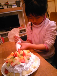 今年はももかの希望で市販のスポンジケーキをデコレーションしました 生クリームの搾り出しは回を重ねる度にうまくなったね。 今年一番の作品だねっ 今年もサンタさんを始め、たくさんの方から贈物をいただいた子どもたち。 喜びに包まれて温かな一日でした。ずっと大事にしてほしいなーと思います(*^-^*)