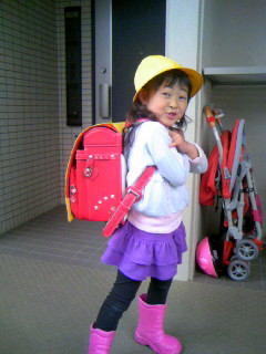 同じマンションの一年生になったお友達5人で仲良く登校です(o^-')b
