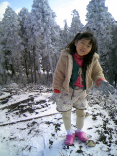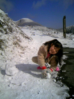 萌々ちゃんはぶ厚い氷と雪に大はしゃぎ。「雪だるまが作りたい!!」と言っています。