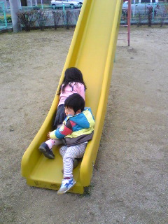 萌々ちゃんは尻もちをつきながらも、すぐに慣れて一緒にgo!
