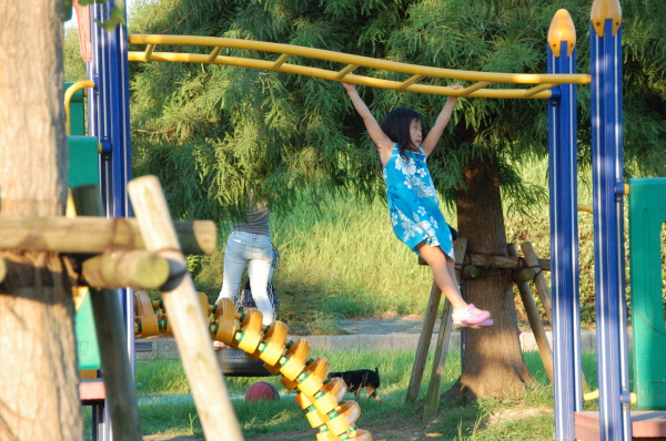 ももちゃんはうんてい、ヒョイヒョイヒョイっと。