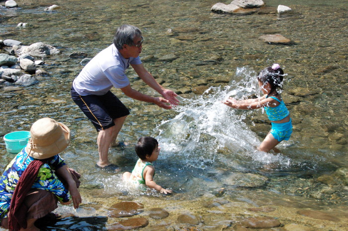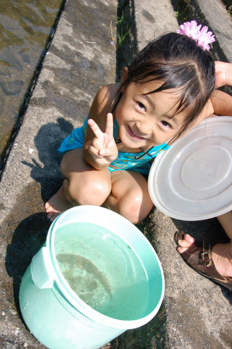 水のかけあいっこ(かけられっこ?!笑)をしたり。そして・・・メダカ!