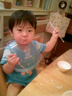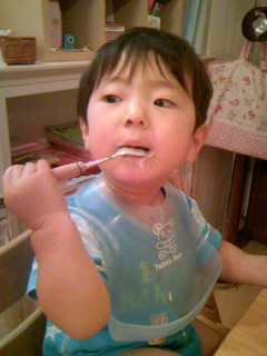 ・見よう見真似でパンを自分でちぎって食べるようになった。