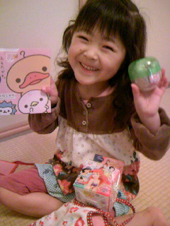 お隣のスーパーに、一人ふりかけを買いに行った萌々ちゃん。 「200円だったら萌々ちゃんのお小遣いで買える♪」って。 ラッキー♪♪ ルンルンだったのはよかったけどオマケが…ヾ(^_^; 最近欲しがらなくなったガチャガチャ2回してきたと。 もちろん、お小遣いを使って遊んだのは初めて。やるなあ~ いったいいくら持ってたんだろうw(☆o◎)w