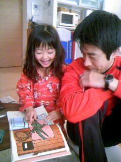 萌々ちゃんのお気に入りの絵本、『わにわにのおふろ』。 こうちゃんの誕生日にいただいたものだけど 萌々ちゃんが一番喜んでます(*'-^)-☆ 蛇口をひねる「きゅるり、きゅるり」 「ぽくん、ぽくん、ぷくん」とおもちゃを浮かべて。 読んで聞いて楽しい音がたくさん♪♪ 出張で会えなかったパパに読んで聞かせる萌々ちゃんです。