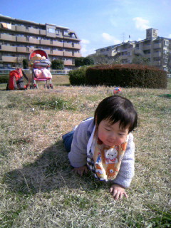 家では1メートル歩けたけどハイハイしまわってるこうちゃんです。